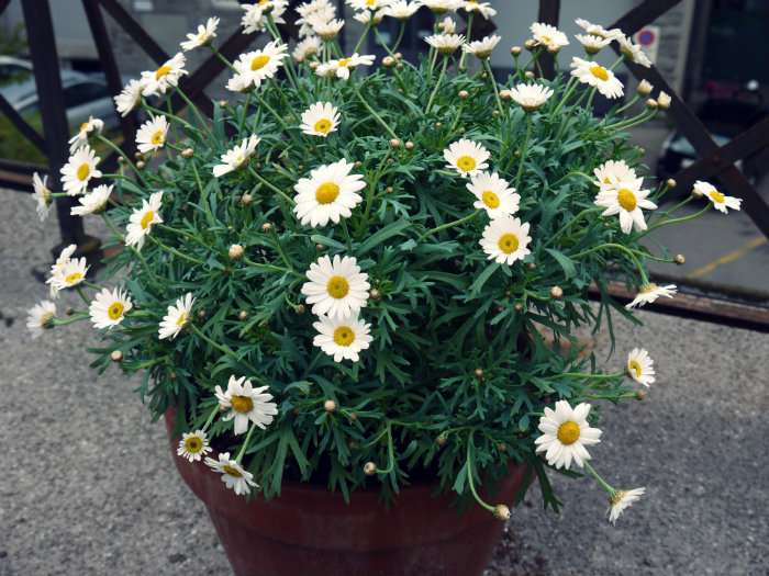 Am Montag haben wir unsere Terrasse etwas auf Vordermann gebracht. Wir haben einige neue Blumen eingetopft und kaputte Pflanzen entsorgt. Unsere Terrasse ist von Häusern umgeben. D.h. Ausblick gleich null. Daher ist es für mich wichtig, dass wir viele verschiedene und farbige Blumen haben. Am Freitag kommt der Gärtner und bringt die Pflanzen, die wir bei ihm überwintert haben und einen neuen Baum. Ich freue mich! Die Sommer-Terrassenzeit kann kommen...
